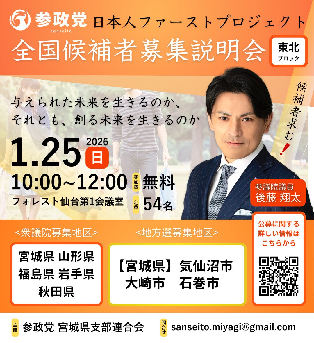 参政党日本人ファーストプロジェクト 全国候補者募集説明会in 宮城